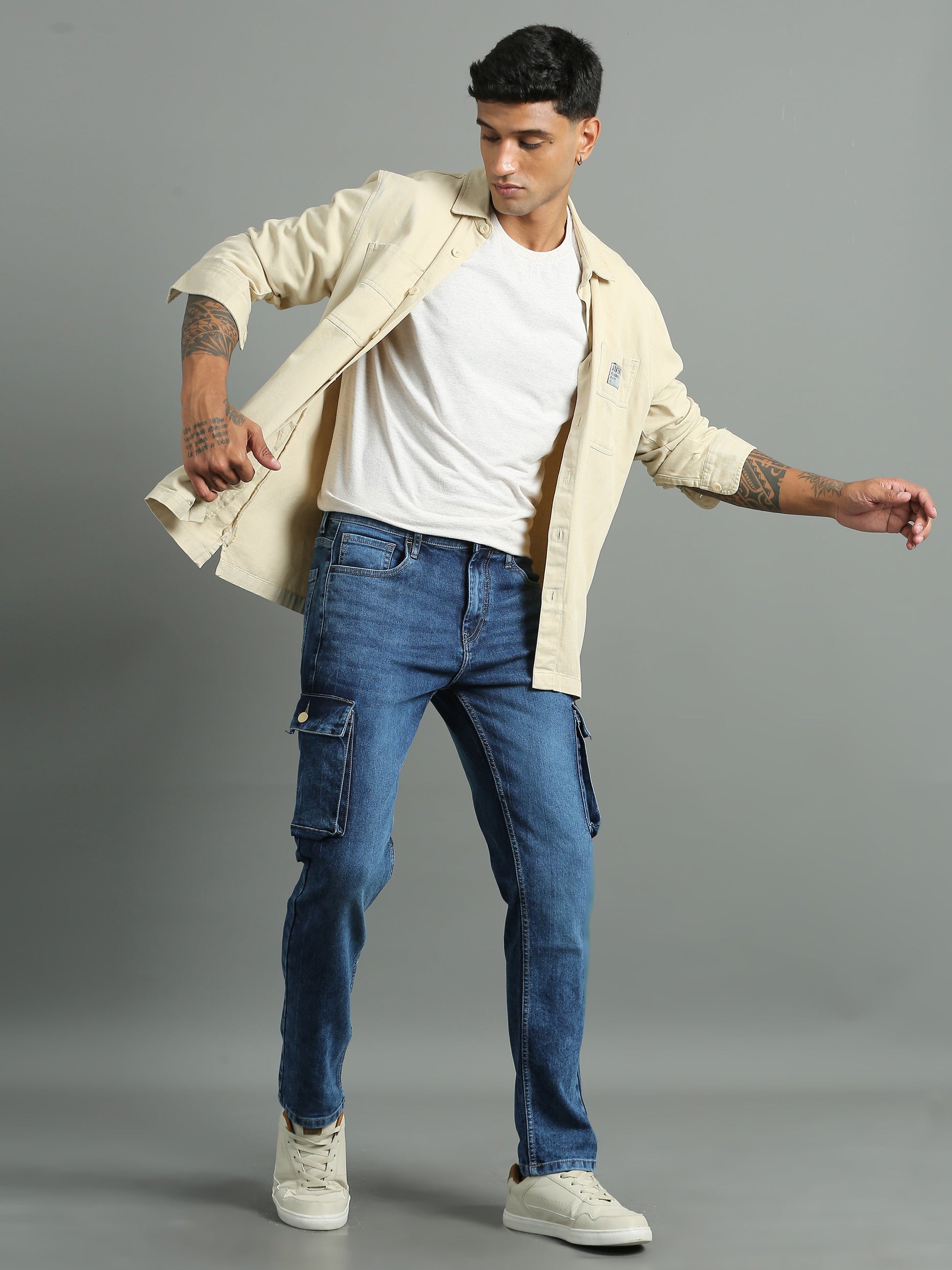 Made from durable denim, these cargo pants offer a relaxed fit and midrise waist for all-day comfort. Multiple utility pockets add practicality, while the button closure ensures a secure fit. Perfect for both work and casual wear. Material : Denim Fit : Relaxed fit Pockets : Multiple utility pockets Rise : Midrise Waistband : Button Closure Wash Care: Machine washable for easy care and maintenance