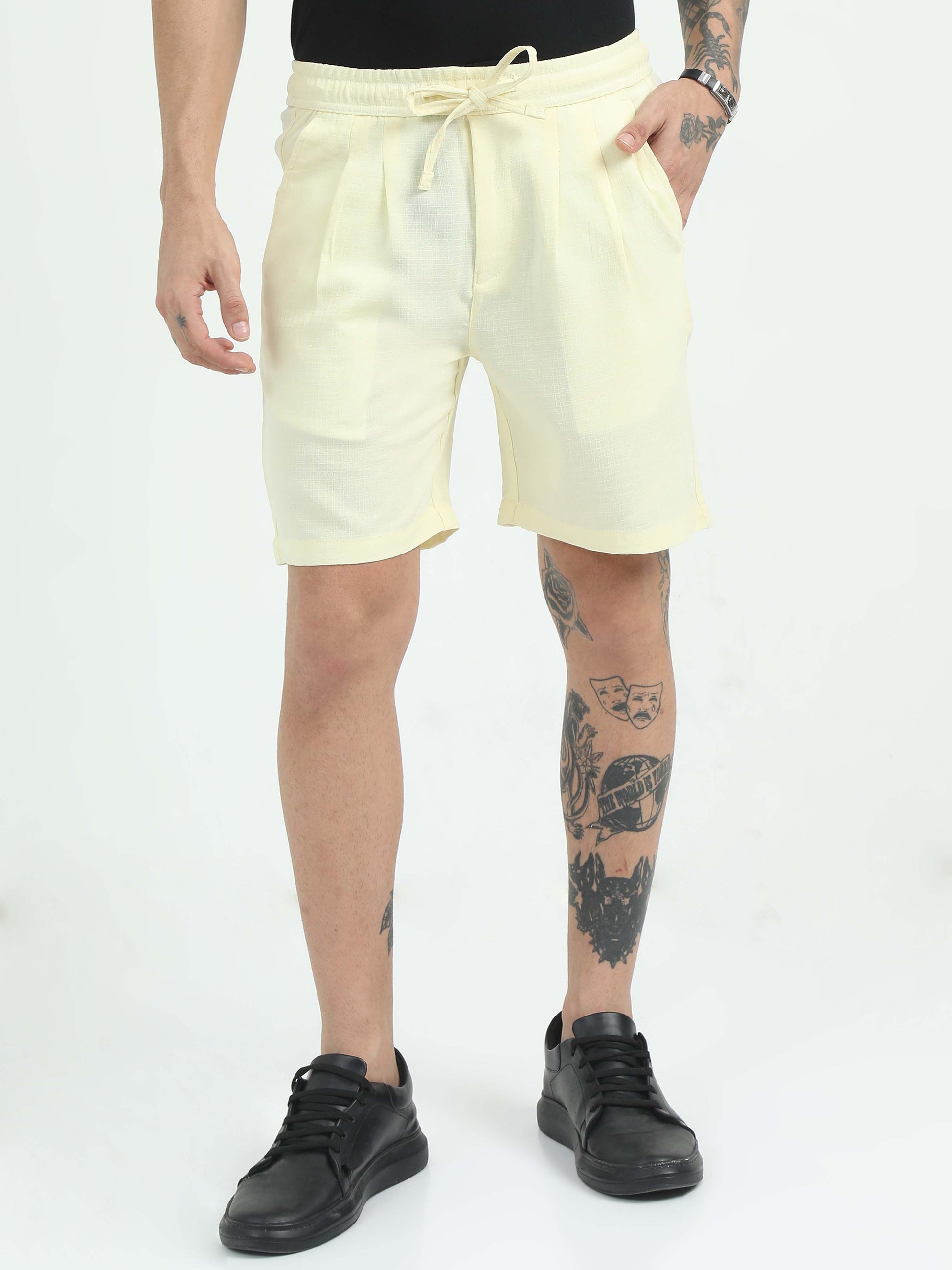 Men Air Linen Summer Shorts-Lemon Yellow