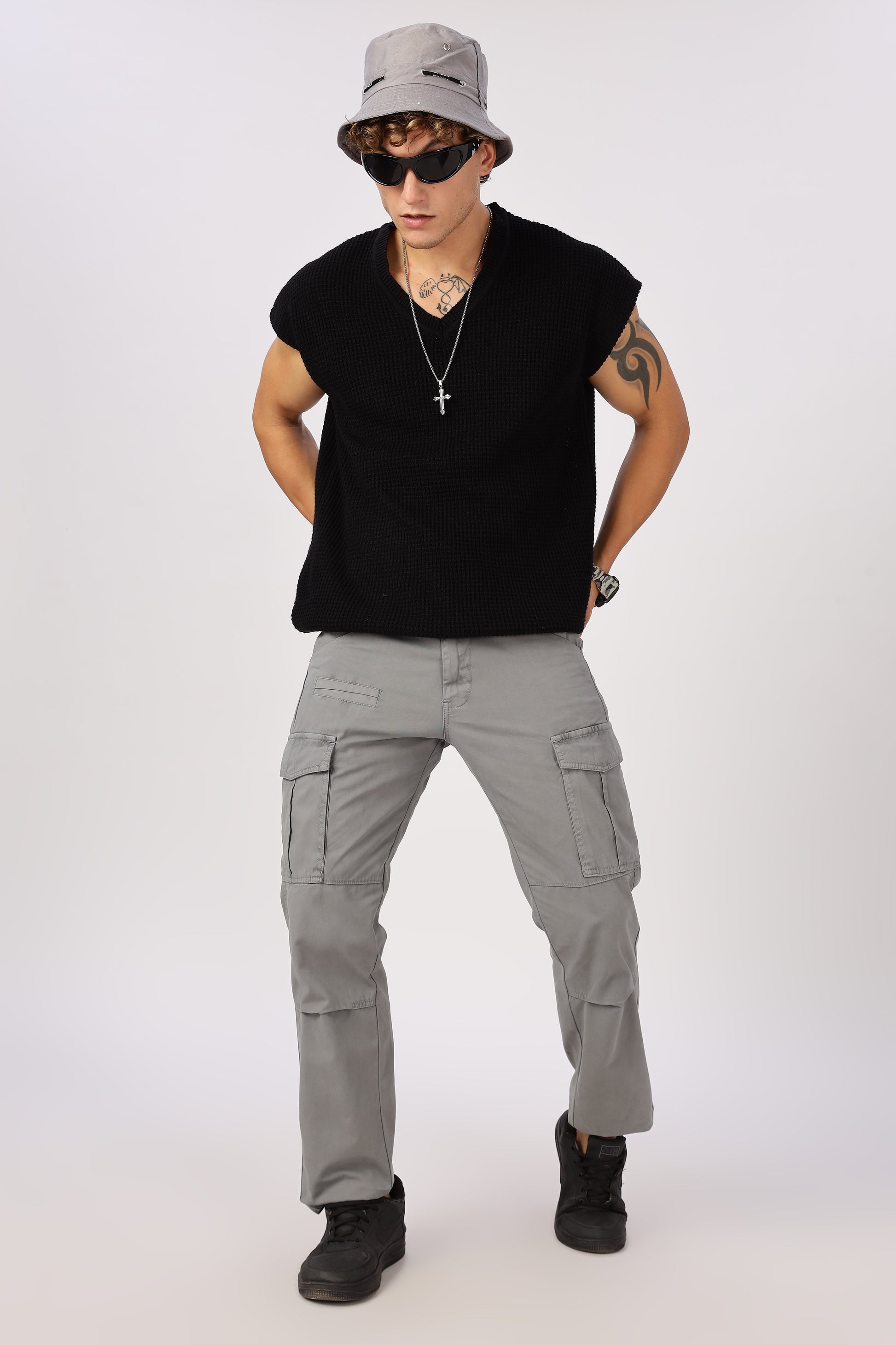 Men Dyed Bulky Cargo-Grey