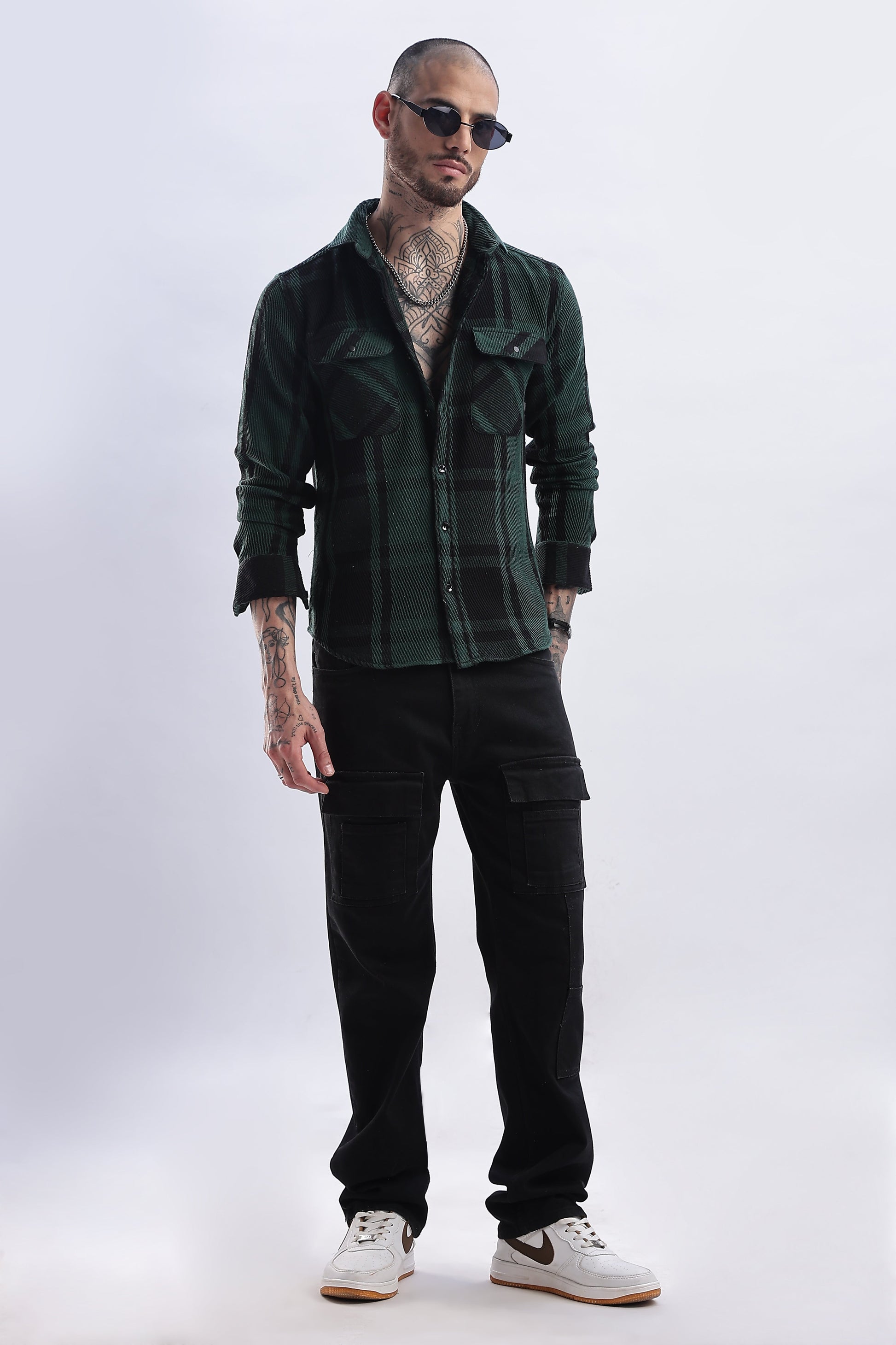 Men Flannel Shirt-Olive