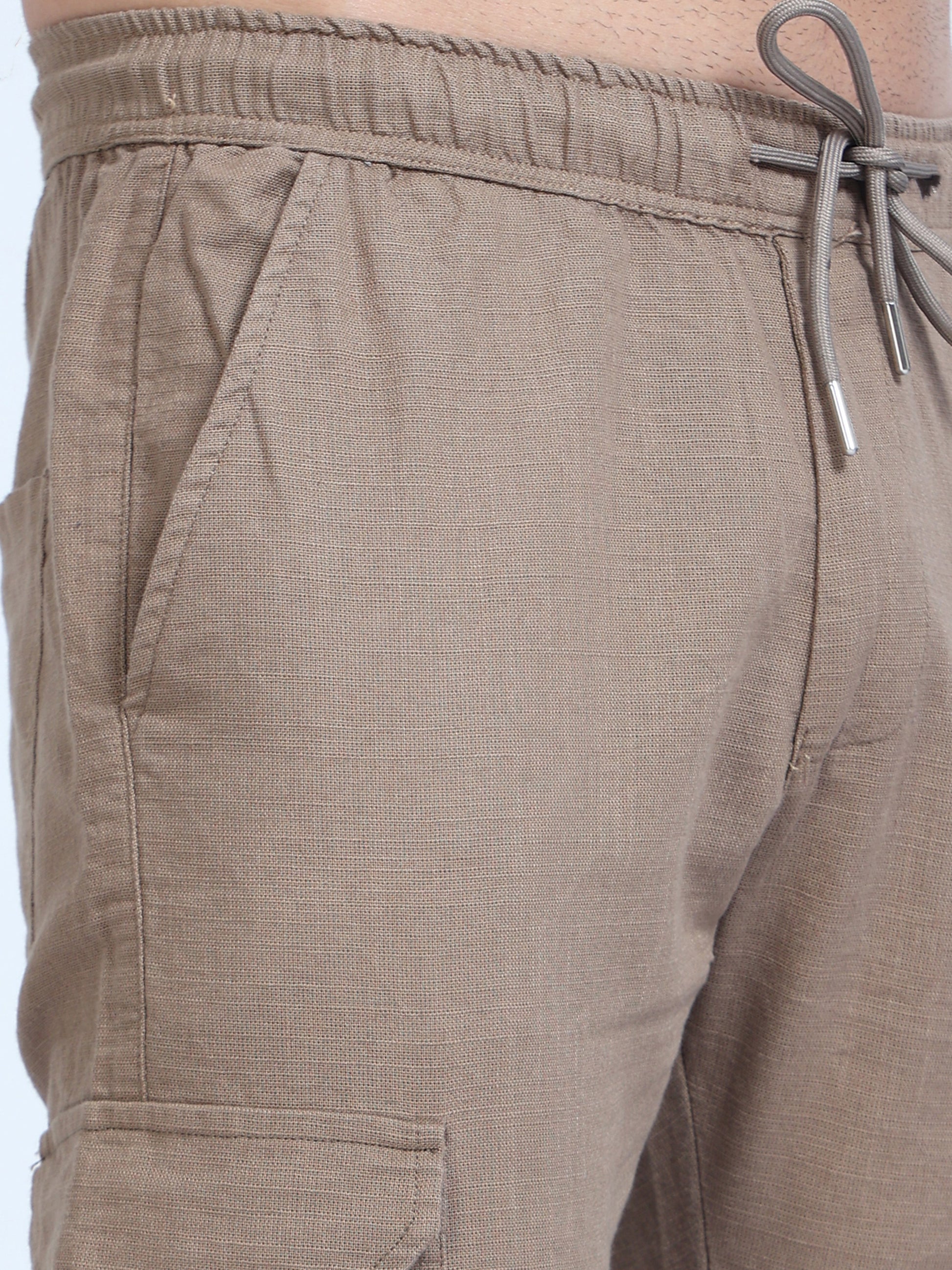 Introducing our chic Camel Linen Pants for Men crafted from premium fabric for year-round comfort. The adjustable drawstring waist ensures a tailored fit, offering relaxed elegance without compromise. Versatile for any occasion, pair with a shirt for sophistication or a tee for casual flair. Elevate your style effortlessly. Material 100% Cotton Slub Fit Slim Fit Product Details Multi Pocket Feather Light Fabric Ankle Length Model Stats Height: 6 Feet 1 Inch Waist: 32 Inches Product care Do not bleach Dry Cleanable Cold machine Wash Tumble dry on low temperature