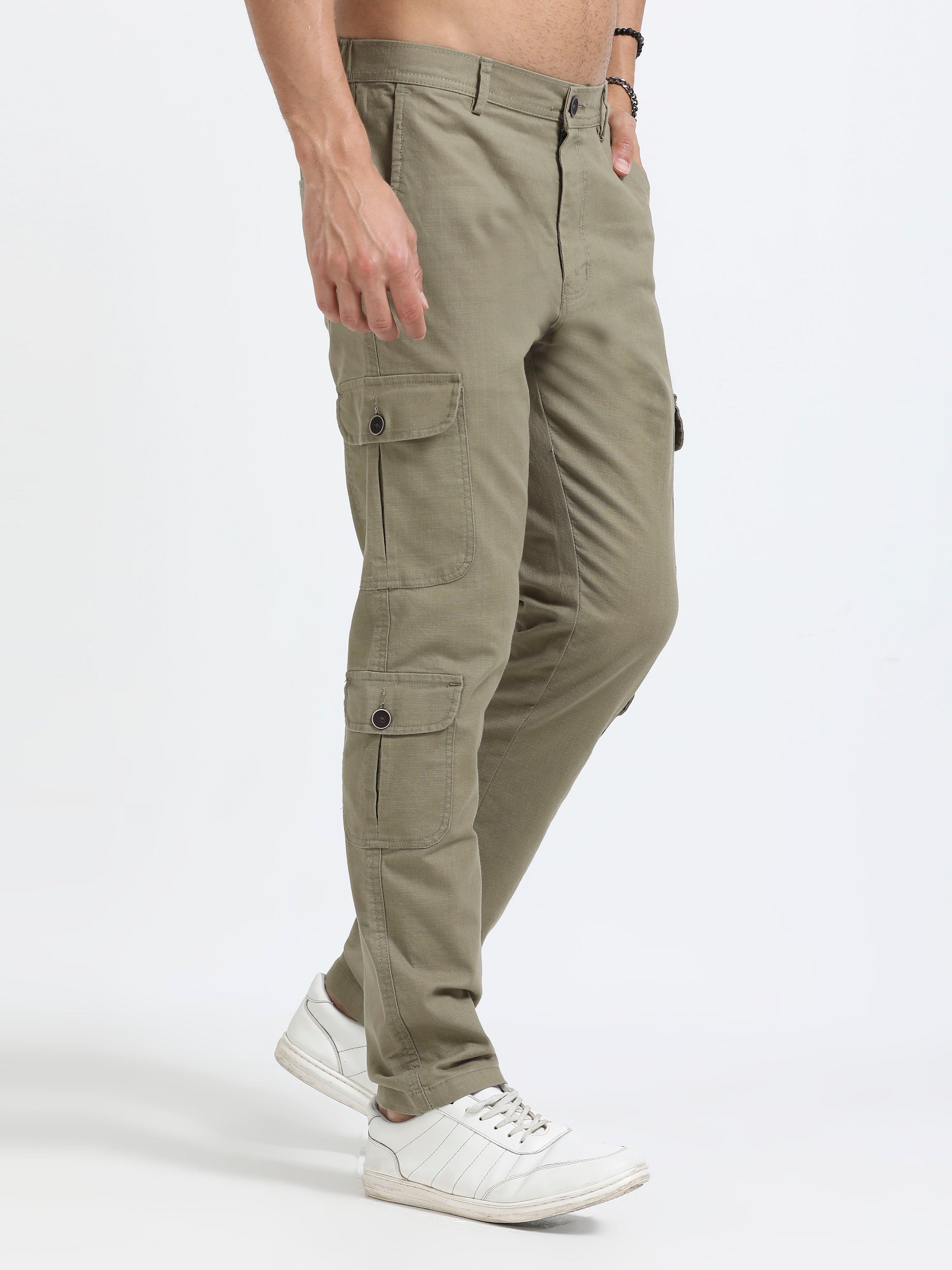 Men Lazy Linen Utility Cargo-Lt Olive