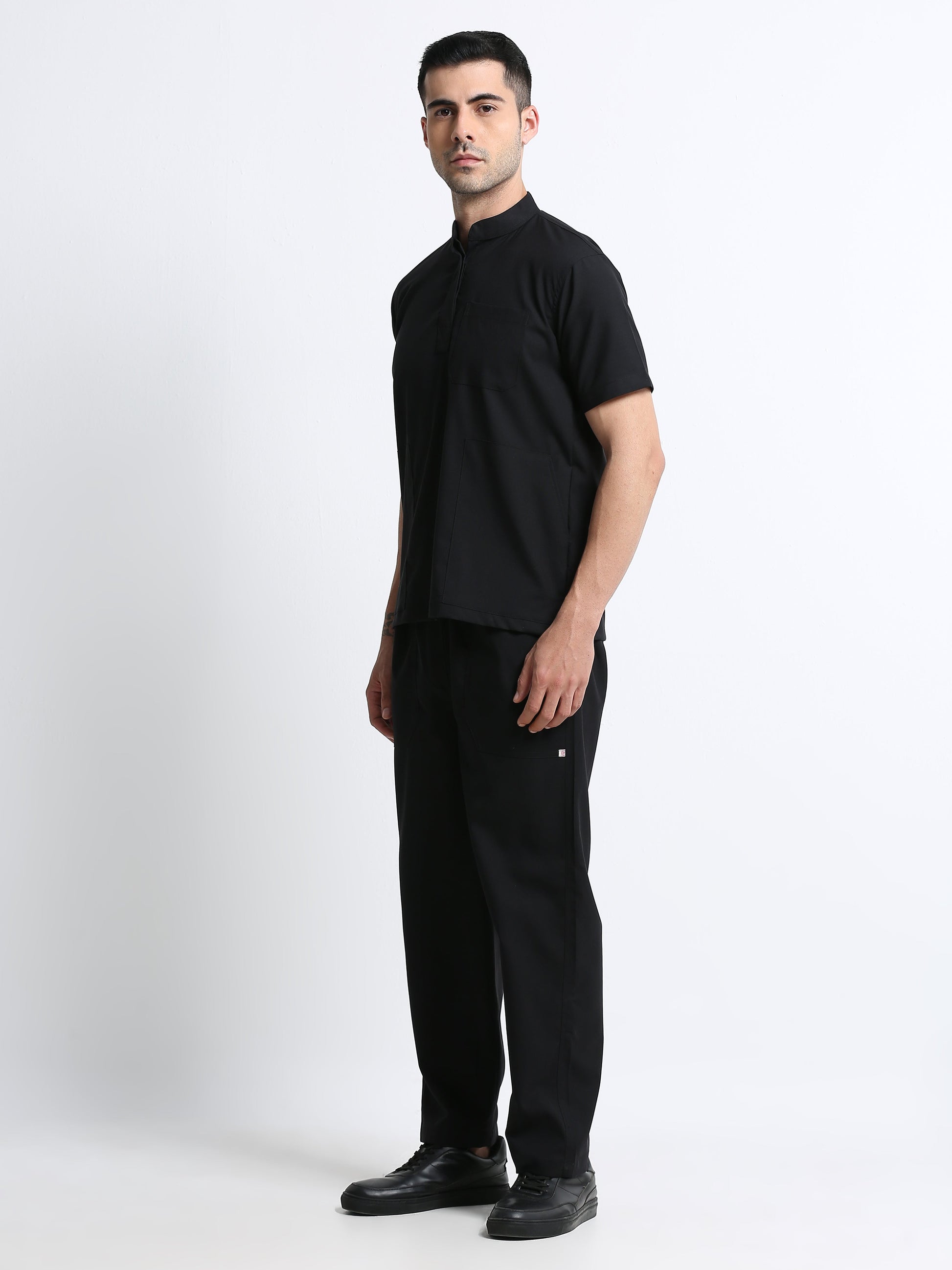 Men’s Black Knight Medical Scrub Set – Mandarin Collar (Chinese Collar) Top & Straight Pants | Wrinkle-Resistant – Eco Flex