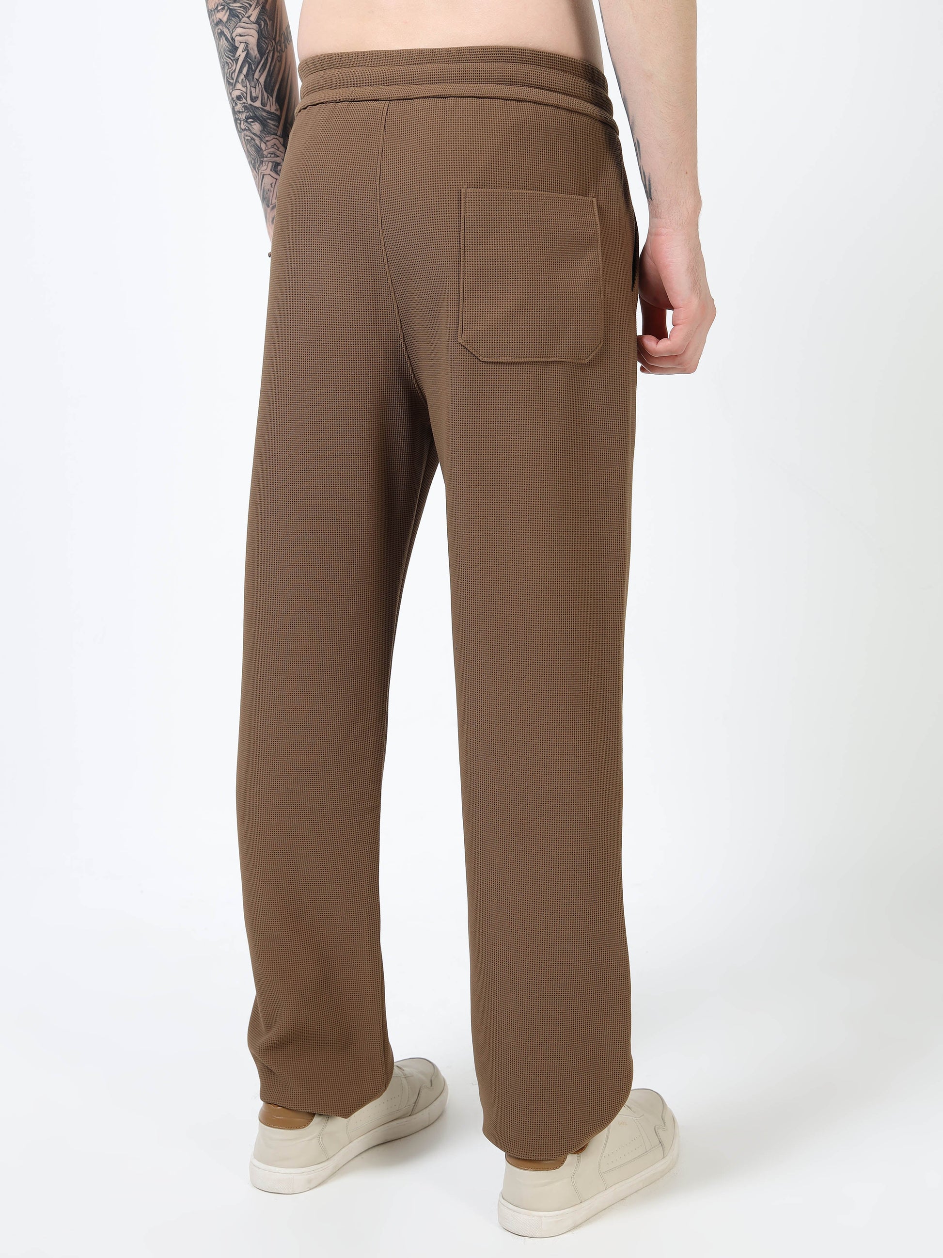 Men’s Coffee Brown Textured Slim Fit Joggers with Adjustable Drawstring & Utility Pockets