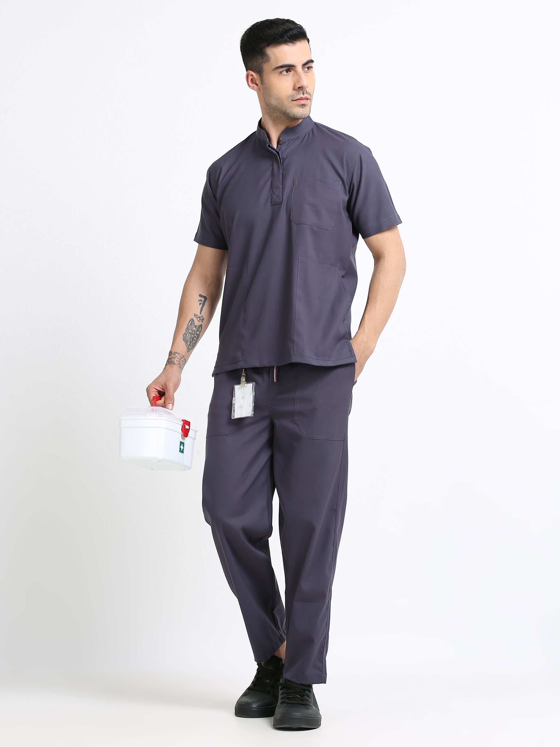 Men’s Heather Grey Medical Scrub Set – Mandarin Collar (Chinese Collar) Top & Straight Pants | 2-Way Stretch, Antibacterial & Wrinkle-Resistant – Apollo