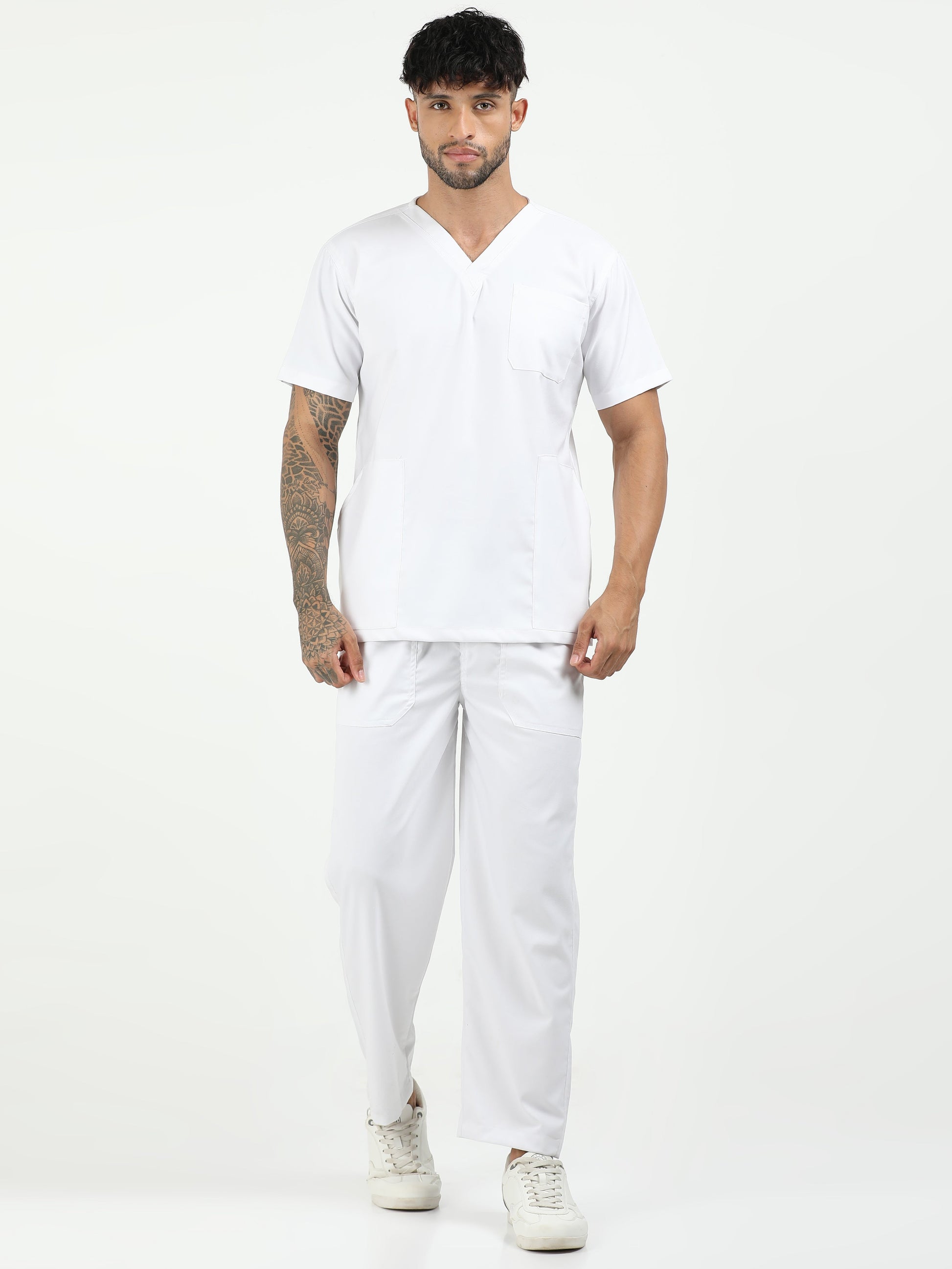 Men’s Snow White Medical Scrub Set – V-Neck Top & Straight Pants | 2-Way Stretch, Breathable & Antibacterial – Apollo