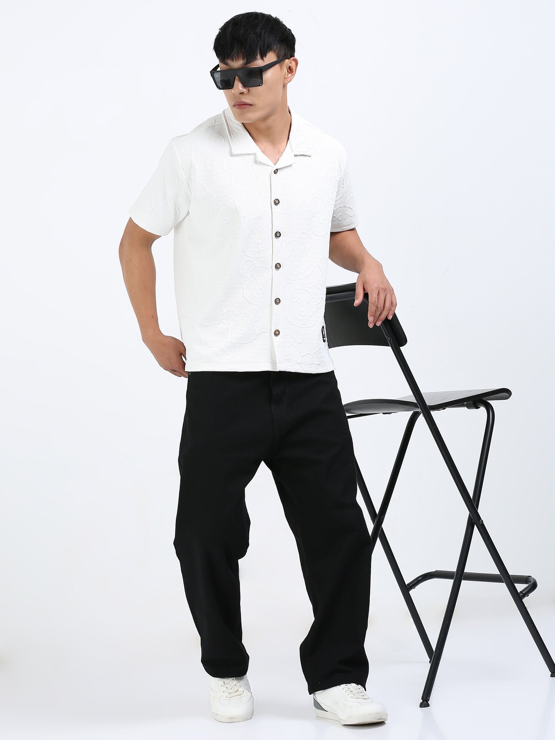 Effortlessly stylish and breathable, this white Cuban collar shirt is the ultimate choice for laid-back days or vacation vibes. Designed with a relaxed fit, short sleeves, and a button-down front, this shirt offers both comfort and versatility. Whether you're heading to a beach party or a casual brunch, it’s a go-to wardrobe essential. Key Features: Cuban Collar Design: Offers a relaxed and modern resort-style lookButton-Down Front: Classic and easy-to-style closureLightweight & Breathable Fabric: Ideal for warm-weather wearRelaxed Fit: Provides all-day comfort without compromising on styleMinimal Branding: Small patch detail near hem for a clean finishVersatile Style: Pairs well with shorts, chinos, or denim