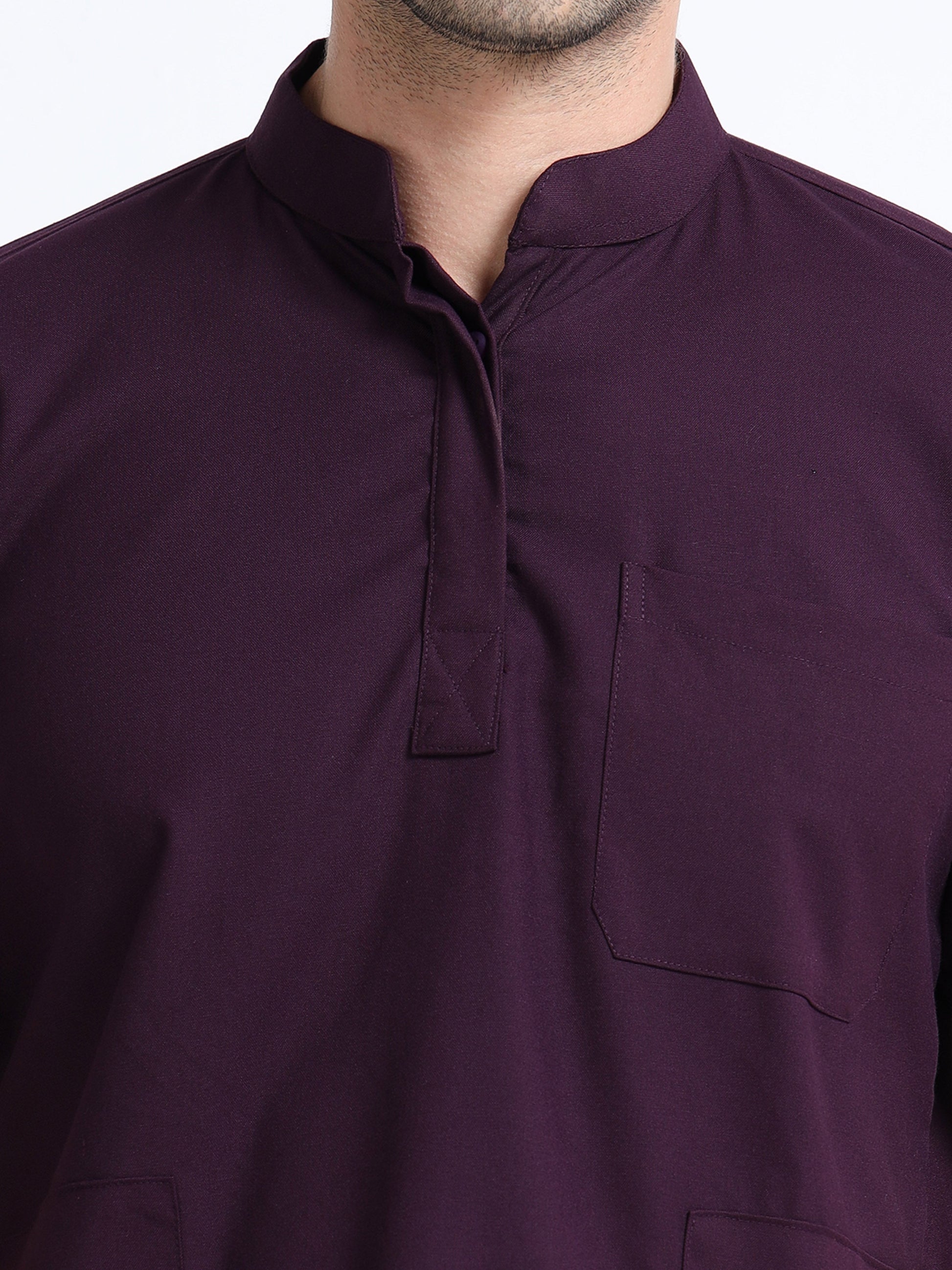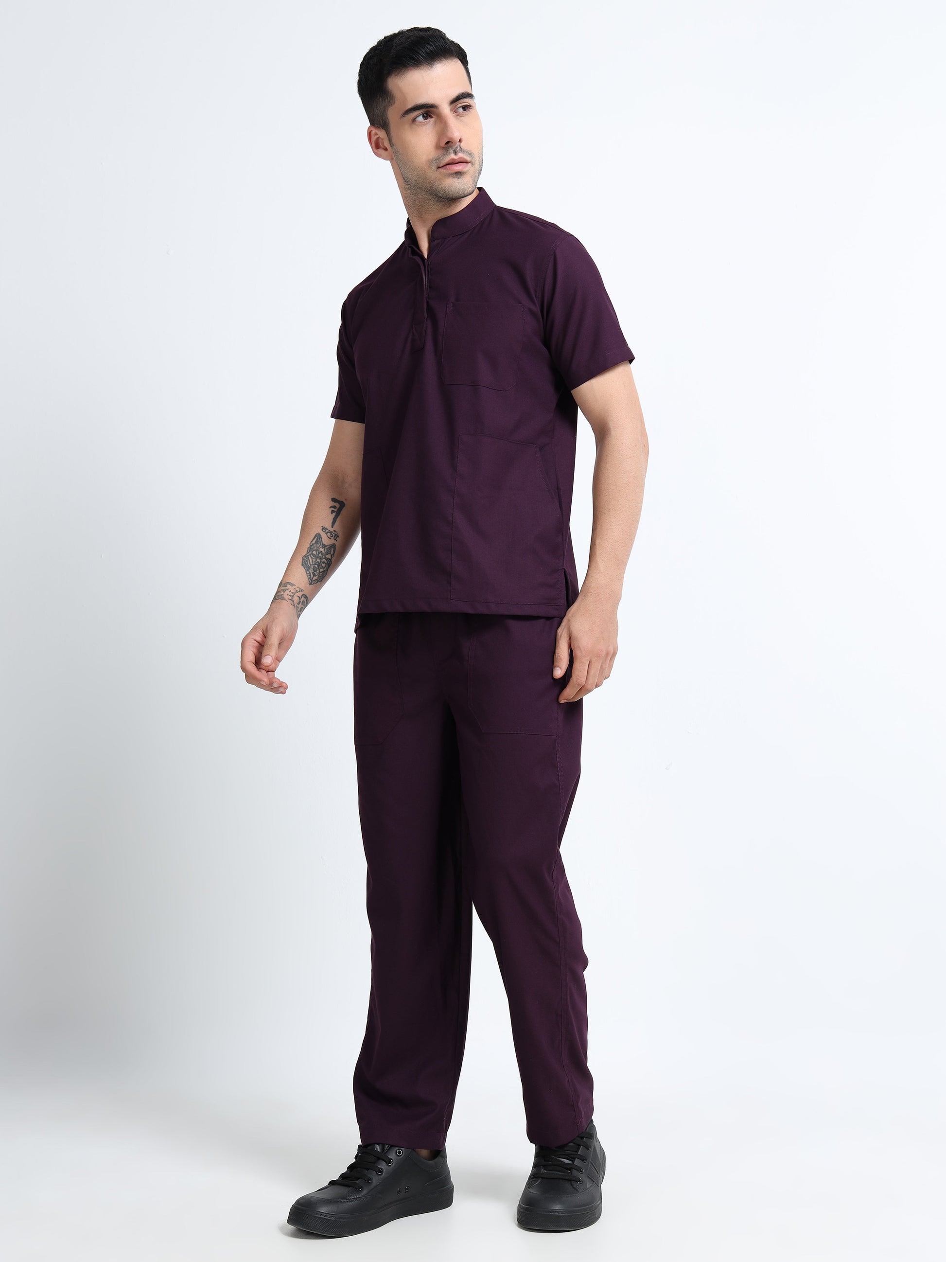 Men’s Wine Medical Scrub Set – Mandarin Collar (Chinese Collar) Top & Straight Pants | 2-Way Stretch, Antibacterial & Wrinkle-Resistant – Apollo