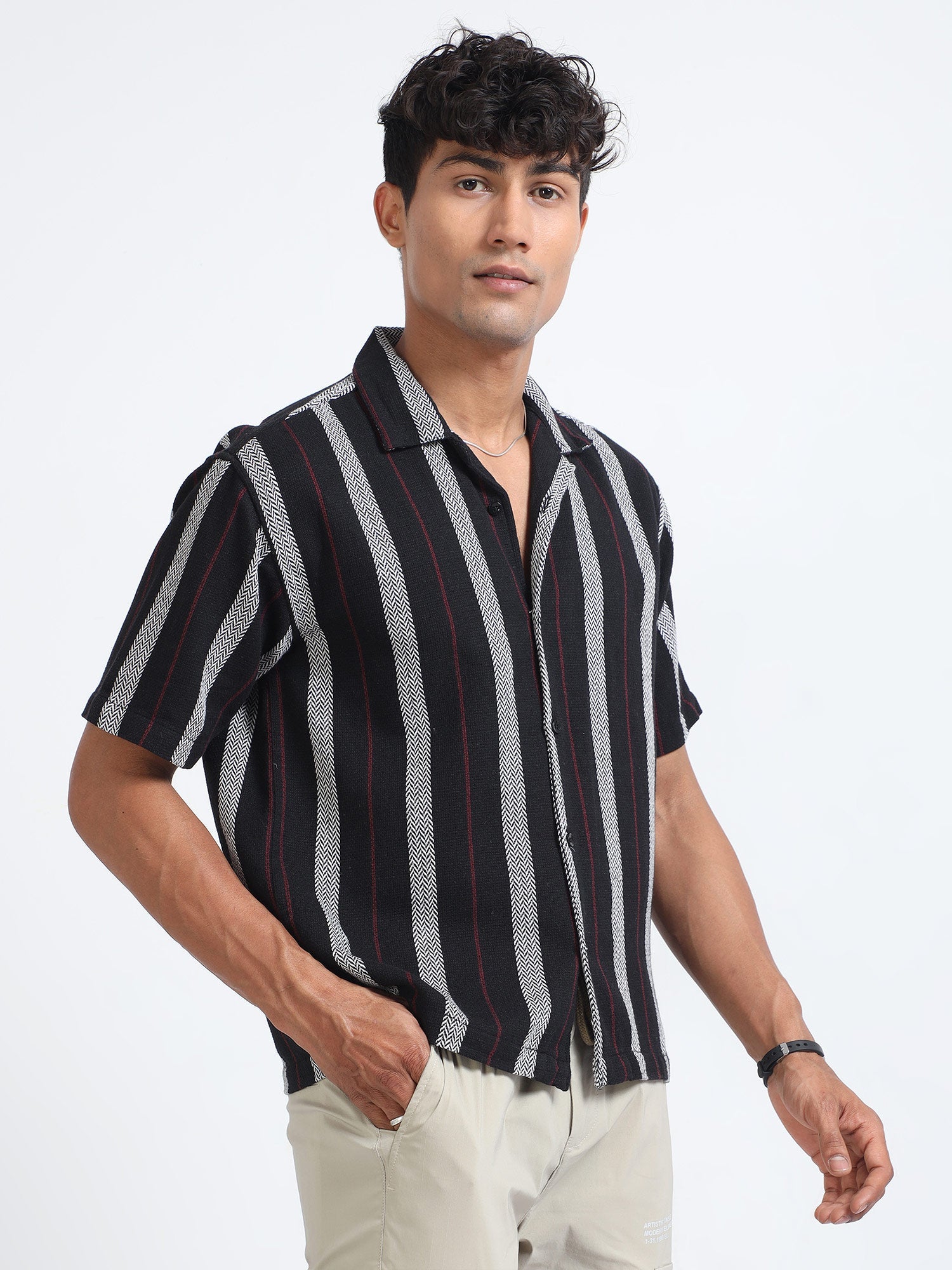 Introducing our Men Striped Jacquard Black Oversized Shirt ā the epitome of contemporary style and comfort. Elevate your wardrobe with this versatile and on-trend piece that seamlessly blends classic sophistication with a modern edge. Crafted from high-quality, breathable fabric, this shirt ensures a comfortable fit all day long. The jacquard weaving technique adds a touch of luxury and texture to the stripes, creating a subtle yet distinctive pattern that sets it apart from ordinary shirts. The oversized silhouette not only enhances comfort but also exudes a laid-back, effortlessly cool vibe. PRODUCT DETAILS Fit: Oversized Fit Length: Regular Type: Shirt Sleeve: Half Print or Pattern Type: Striped Jacquard Closure: Button Fabric:95% Polycotton 5% Spandex Product Feature: Feather Light Fabric Product care Air Dry Cool Iron Do not bleach Dry Cleanable Cold machine Wash Tumble dry on low temperature