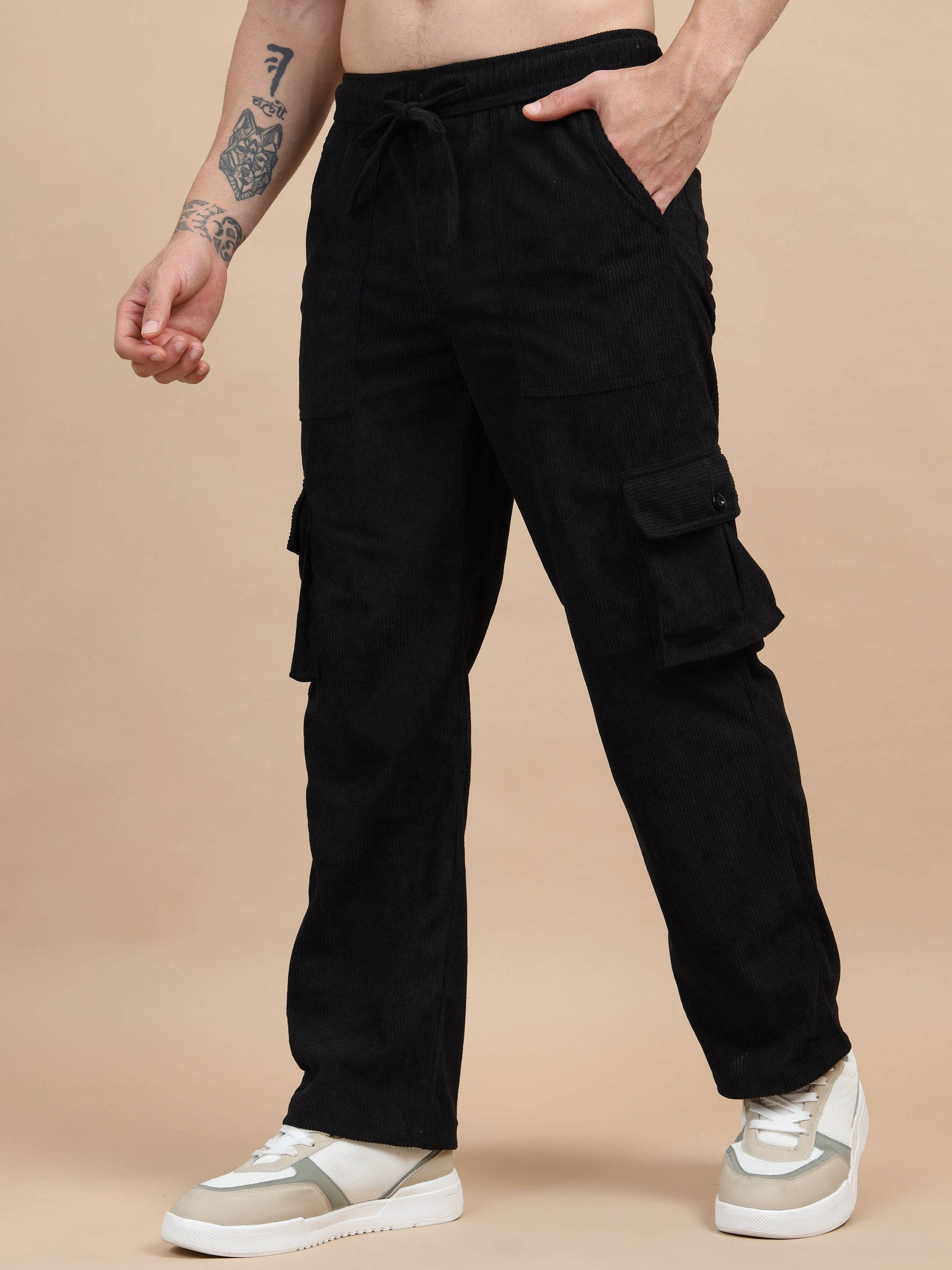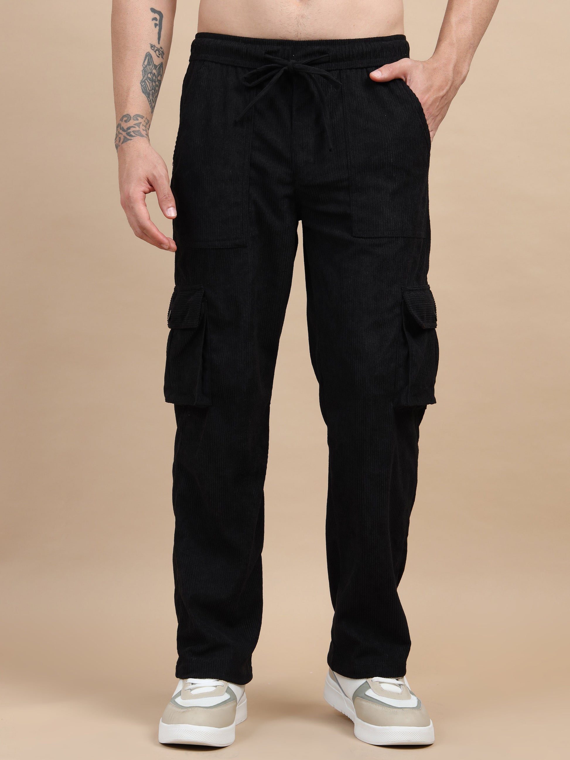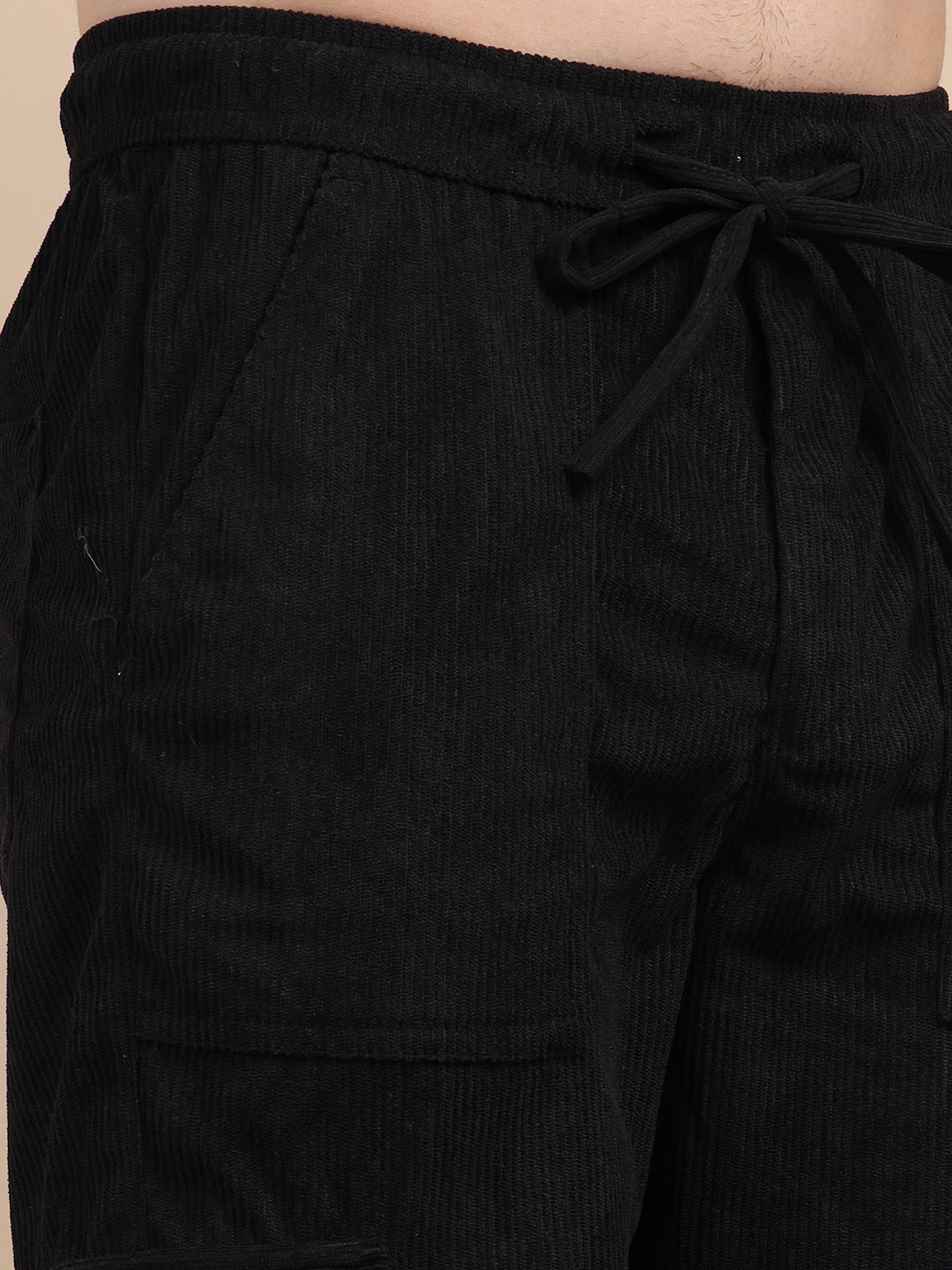 Crafted from soft and durable corduroy, these regular-fit cargo pants offer a perfect blend of comfort and style. Designed with a mid-rise waist and an adjustable drawstring closure, they ensure a secure yet relaxed fit. The solid pattern makes them versatile for casual wear, while six spacious pockets add functionality and a rugged touch. Ideal for everyday wear or outdoor adventures. Fabric: Corduroy Fit: Regular Fit Pattern: Solid Occasion: Casual Length: Regular Number of Items: 1 Closure: Draw String Waist Rise: Mid-Rise Number of Pockets: 6