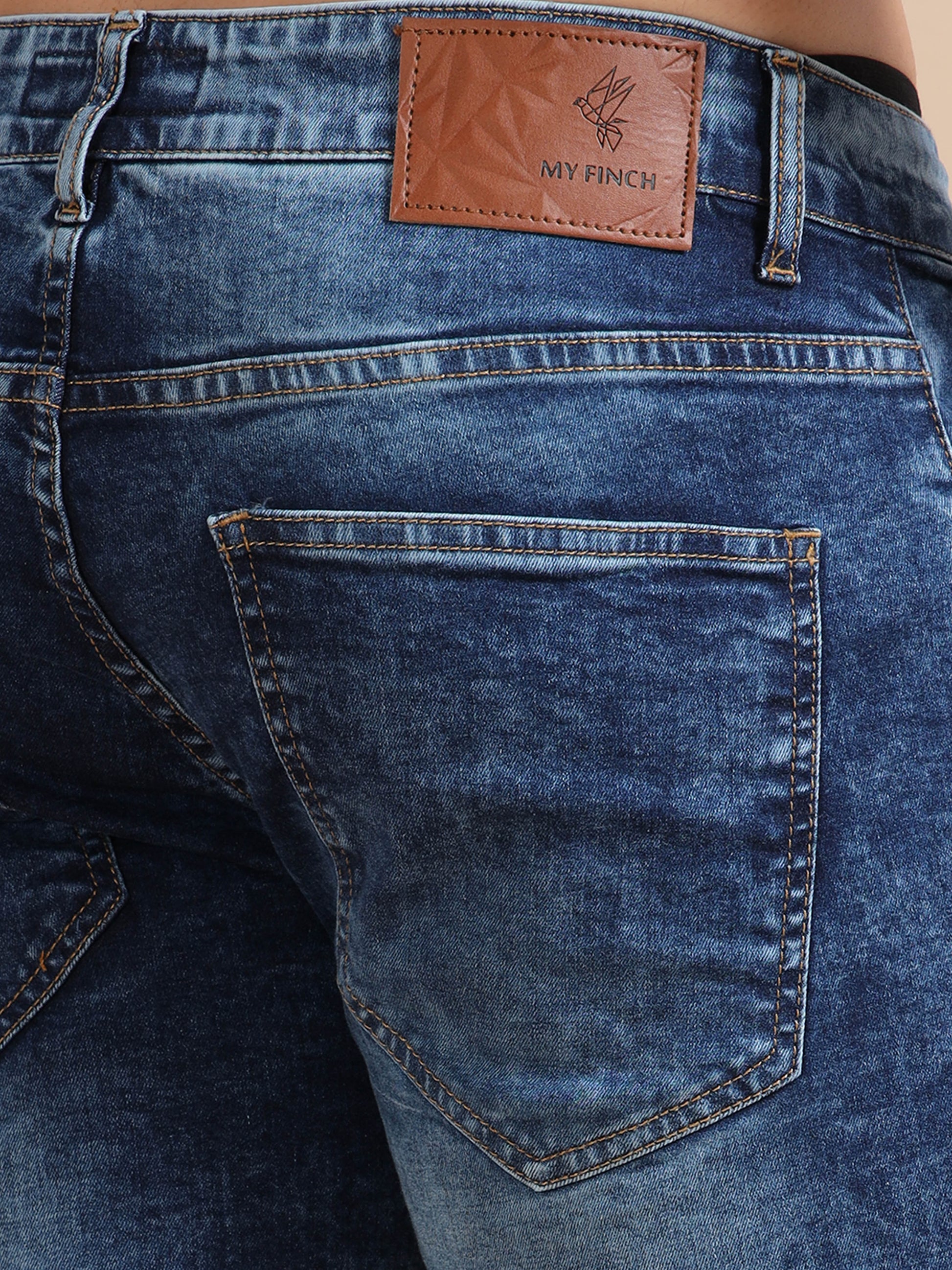 Plus Size Men's Washed Blue Denim Shorts – Knitted Dobby Lycra Comfort Fit