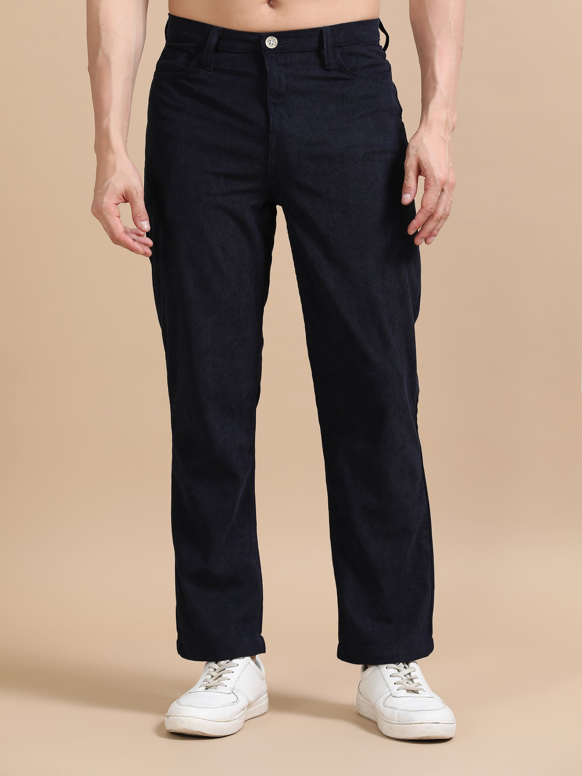 This corduroy piece brings a blend of comfort and style to your casual wardrobe. With a loose fit and a textured solid pattern, it offers a relaxed yet refined look. The mid-rise waist and button closure ensure a secure and comfortable fit, while four functional pockets provide added convenience. Perfect for casual outings, this versatile piece pairs effortlessly with your favorite tops and footwear for a laid-back yet fashionable appearance. Fabric: Corduroy Fit: Loose Fit Pattern: Solid Occasion: Casual Length: Regular Print or Pattern Type: Textured Number of Items: 1 Closure: Button Closure Waist Rise: Mid-Rise Number of Pockets: 4