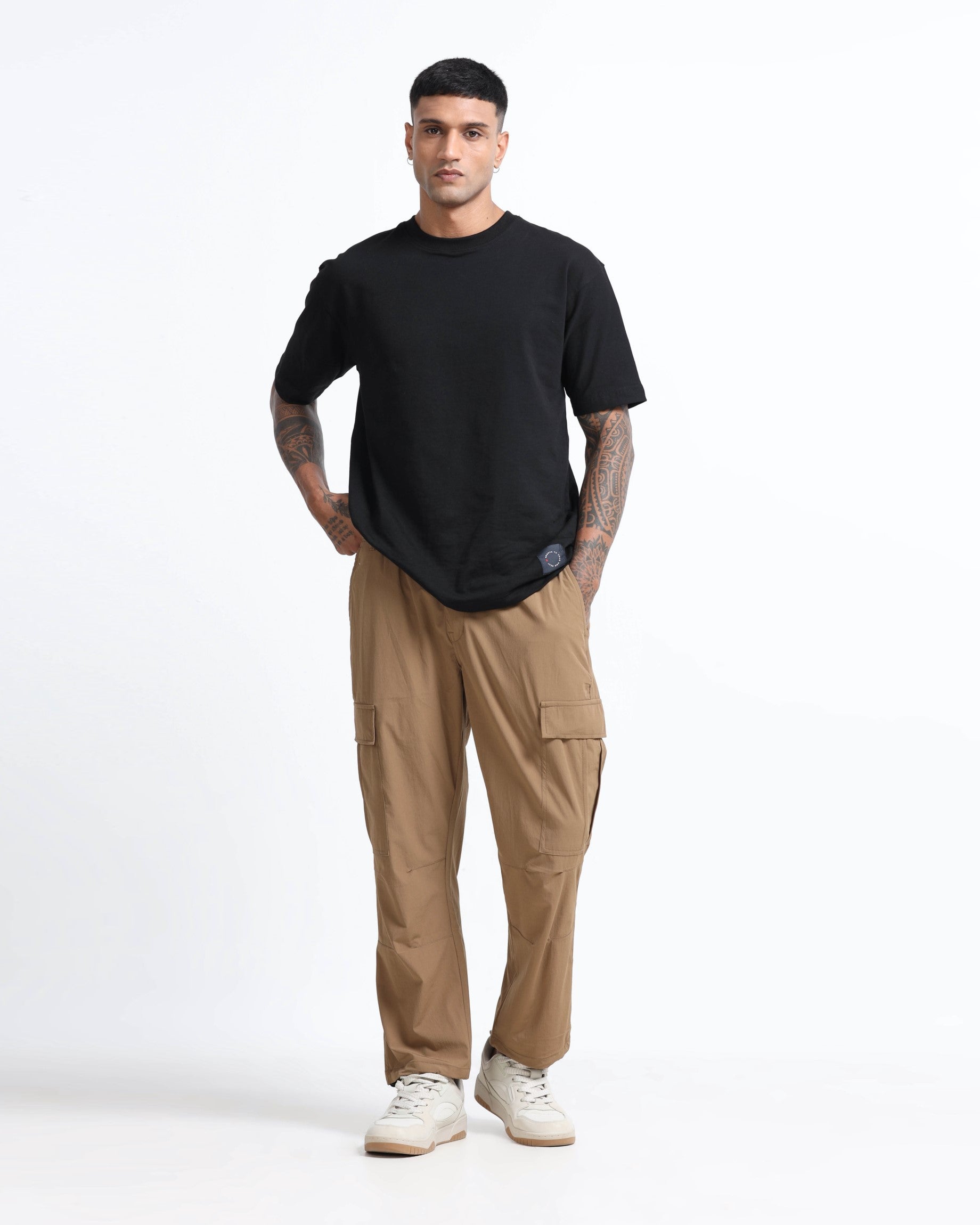 These Travel Cargo Pants are crafted for movement, comfort, and a clean, effortless look. Made from our premium parachute fabric, they feel ultra-light, soft, and breathable—perfect for long days, quick trips, and everything in between. The subtle texture of the parachute fabric adds character without being loud, keeping the look sleek and modern. Designed to elevate your everyday wardrobe, these cargos pair easily with our round-neck tees for a sharp, put-together vibe. FIT: Relaxed and airy with a smooth waistband and internal drawstrings that stay hidden for a neat, minimal look. The roomy cargo fit adds ease while keeping the silhouette trendy and modern. Color: Brown Model is 6'0" and wearing size 32 Parachute cargo Relaxed fit