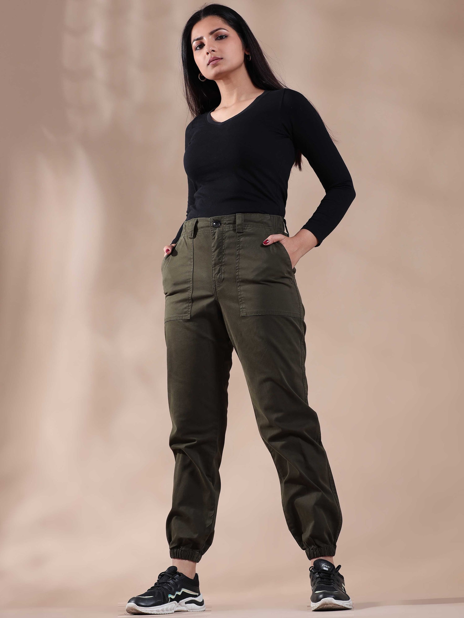 Introducing our Vintage olive joggers women's, crafted with comfort and style in mind. Made from high-quality cotton, these joggers are not only soft to the touch but also durable for everyday wear. Pocket: 4 Pockets Fabric: Feather Light Length: Ankle Type: Ribbed Joggers Fit: Slim Fit Material: 97% Cotton | 3% Elastane Model Details: Model Height is 5.5'' and Wearing 30'' Waist