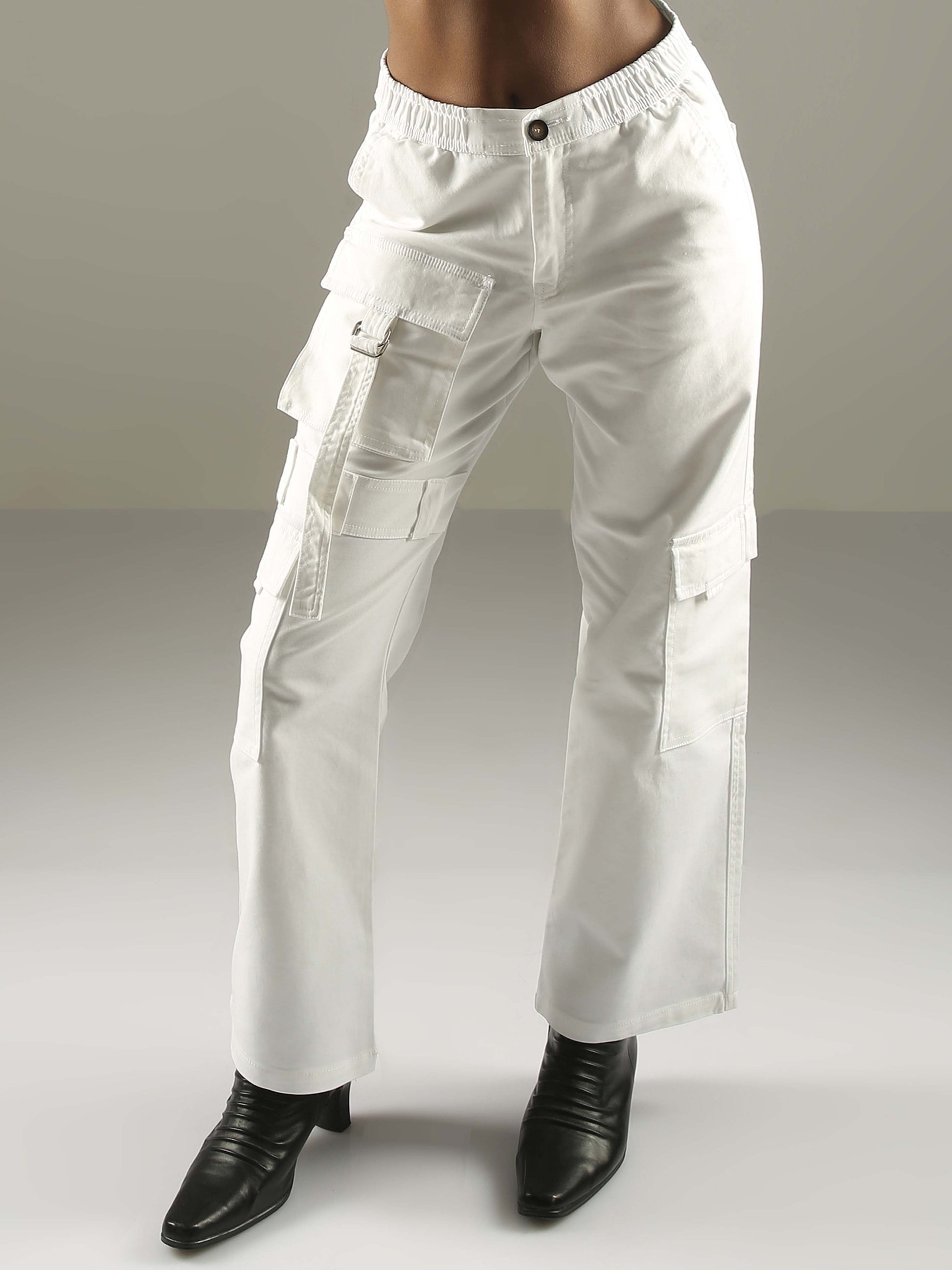 Dance, groove, and own the streets in our white baggy cargo pants for women! The perfect blend of style and comfort to keep you moving all day long. Make a statement without saying a word in our Streetwise Cargo Swagger Pants. These pants don't just carry your essentials ā they carry your attitude, your confidence, and your fearless approach to fashion. High waisted White cargos Cargo fit Multi Pocketed 98% Cotton | 2% Elastane Feather Light Fabric Ankle Length Product care Air Dry Cool Iron Do not bleach Dry Cleanable Cold machine Wash Tumble dry on low temperature
