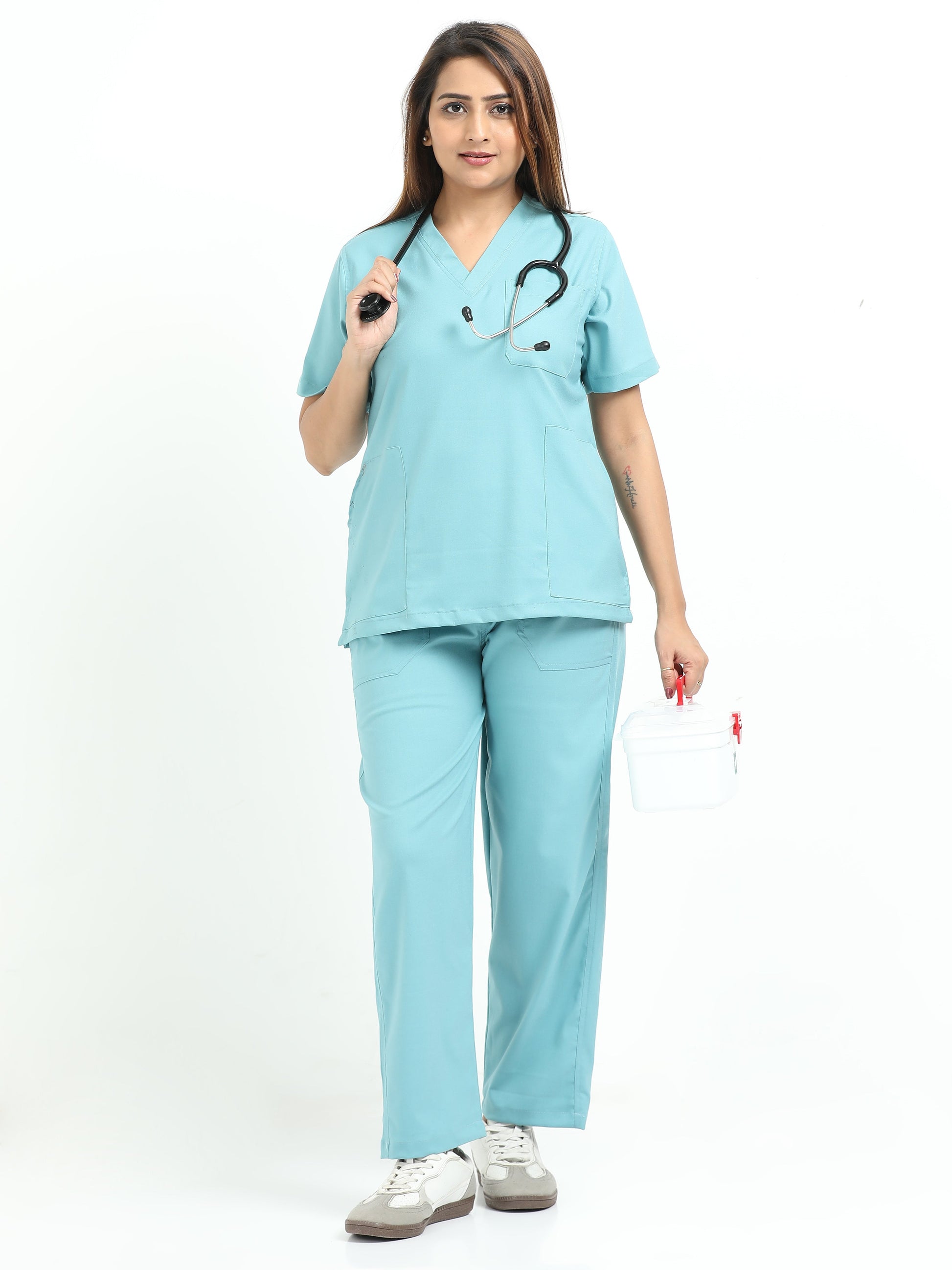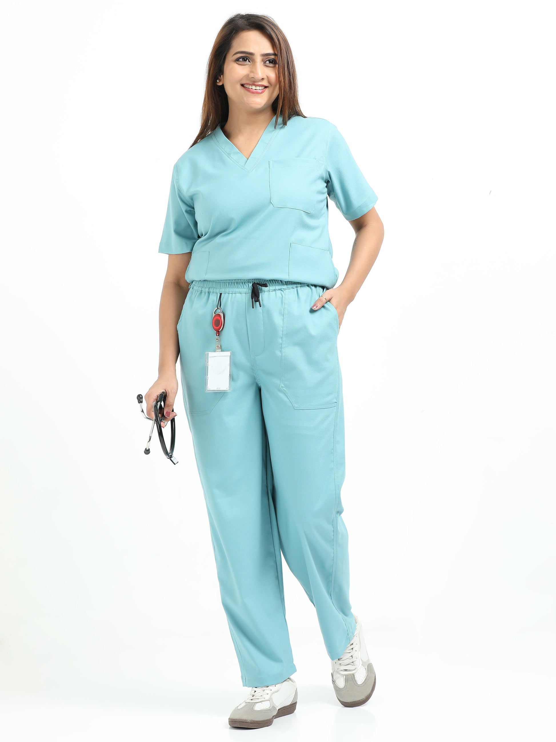 Women’s Eucalyptus Medical Scrub Set – V-Neck Top & Straight Pants | Twill Fabric, Breathable & Antibacterial – Eco Flex