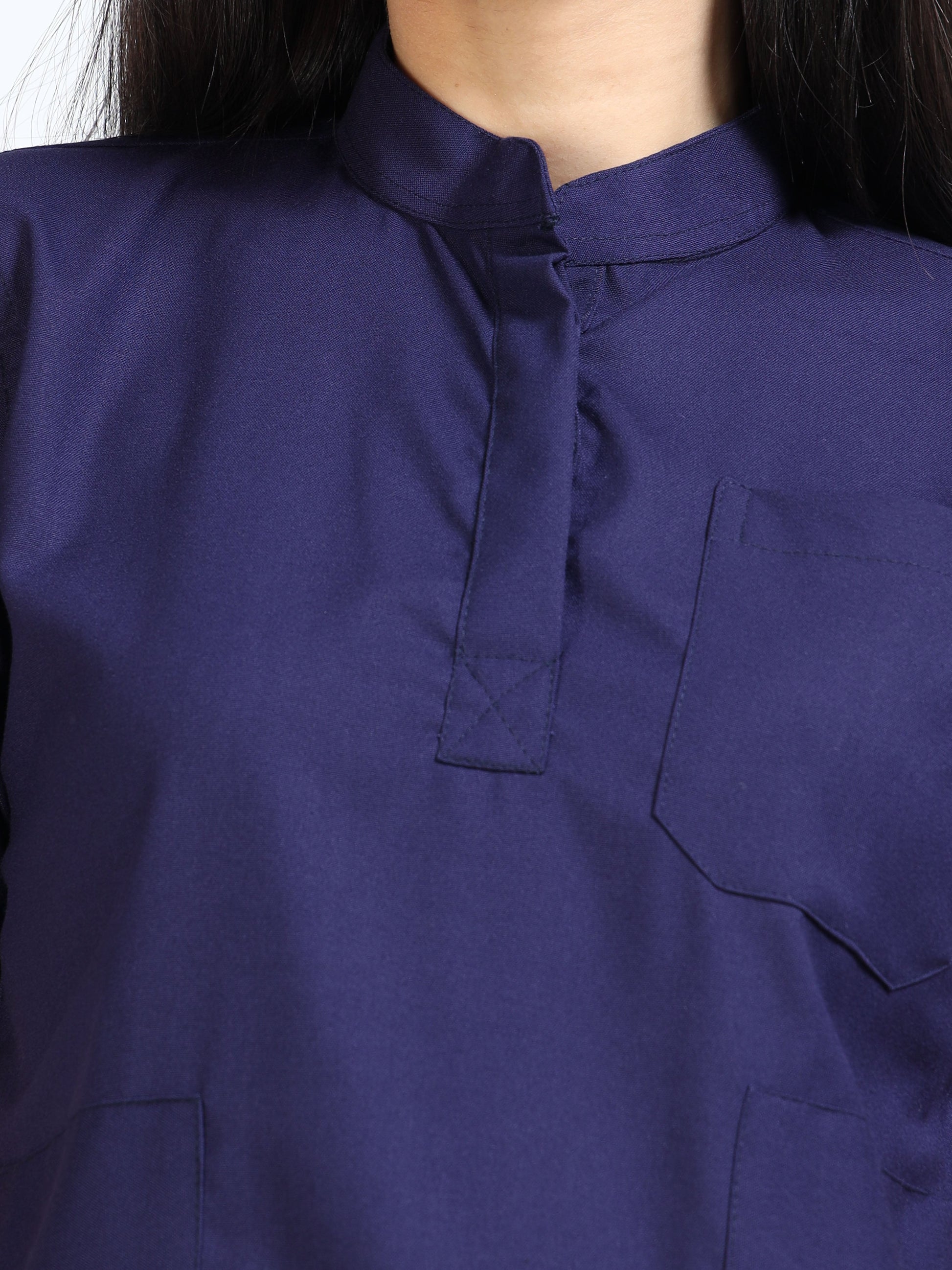 Women’s Navy Medical Scrub Set – Mandarin Collar (Chinese Collar) Top & Straight Pants | 2-Way Stretch, Antibacterial & Wrinkle-Resistant – Apollo