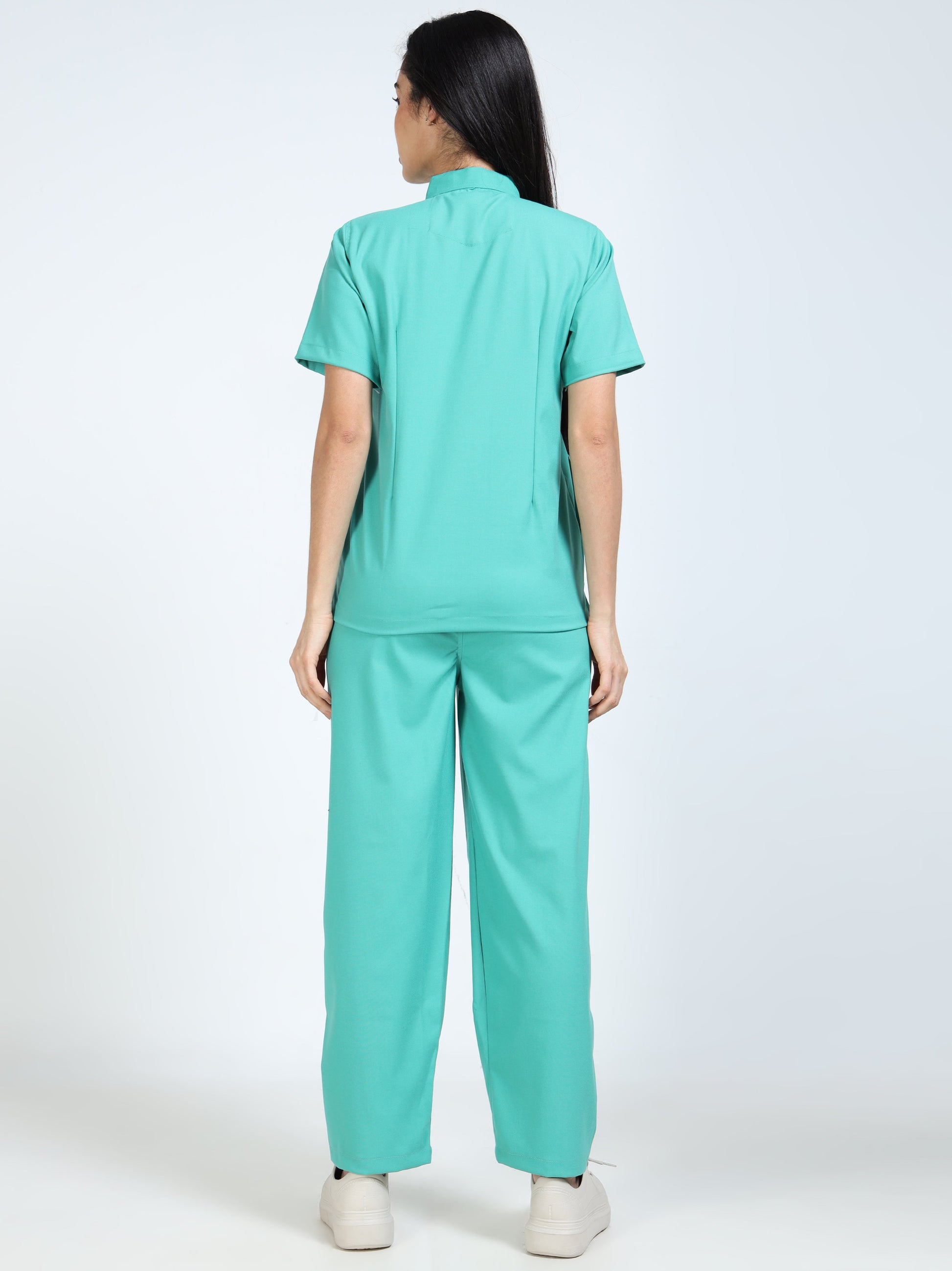 Women’s Sea Green Medical Scrub Set – Mandarin Collar (Chinese Collar) Top & Straight Pants | Twill Fabric, Breathable & Antibacterial – Eco Flex