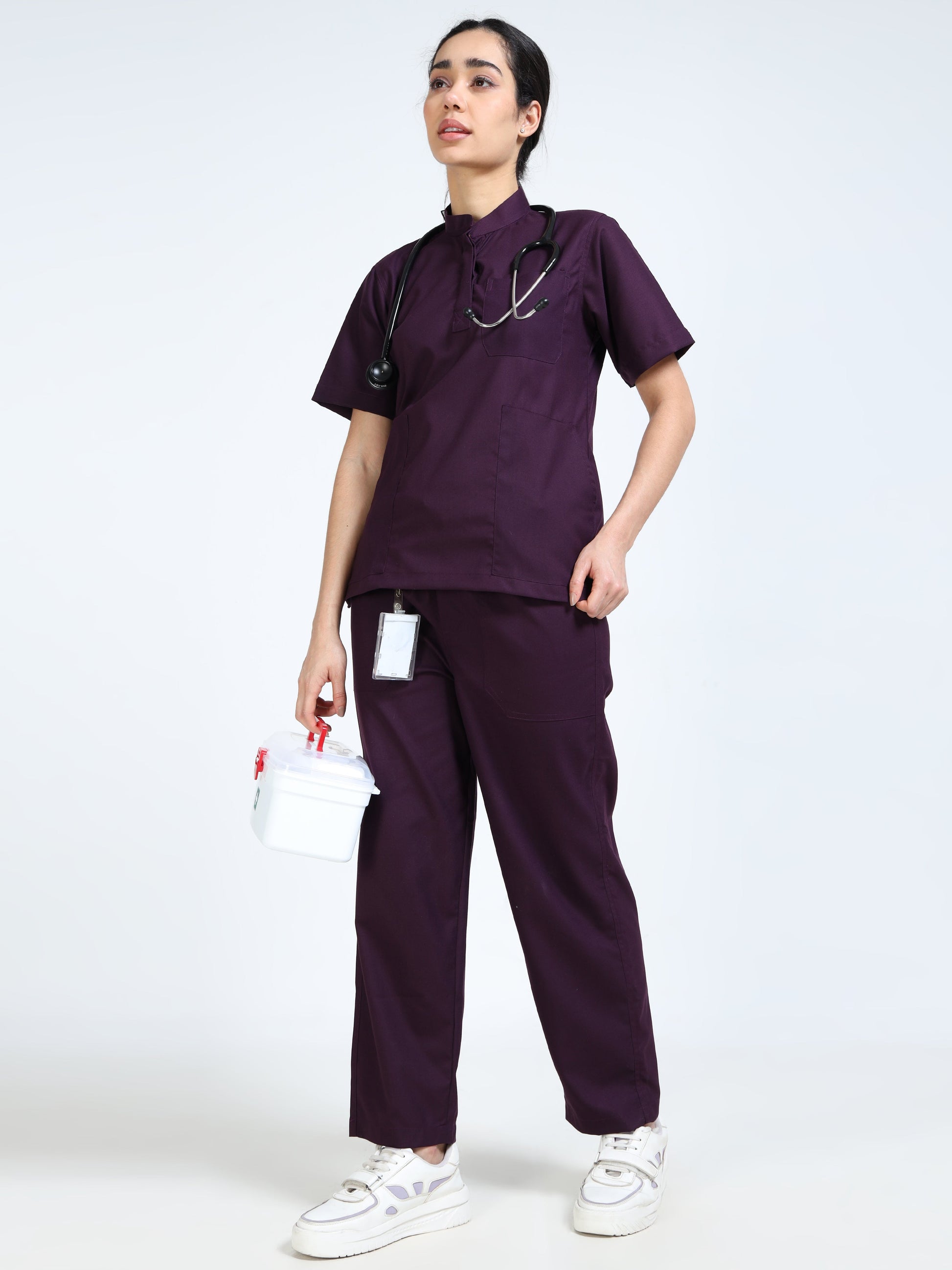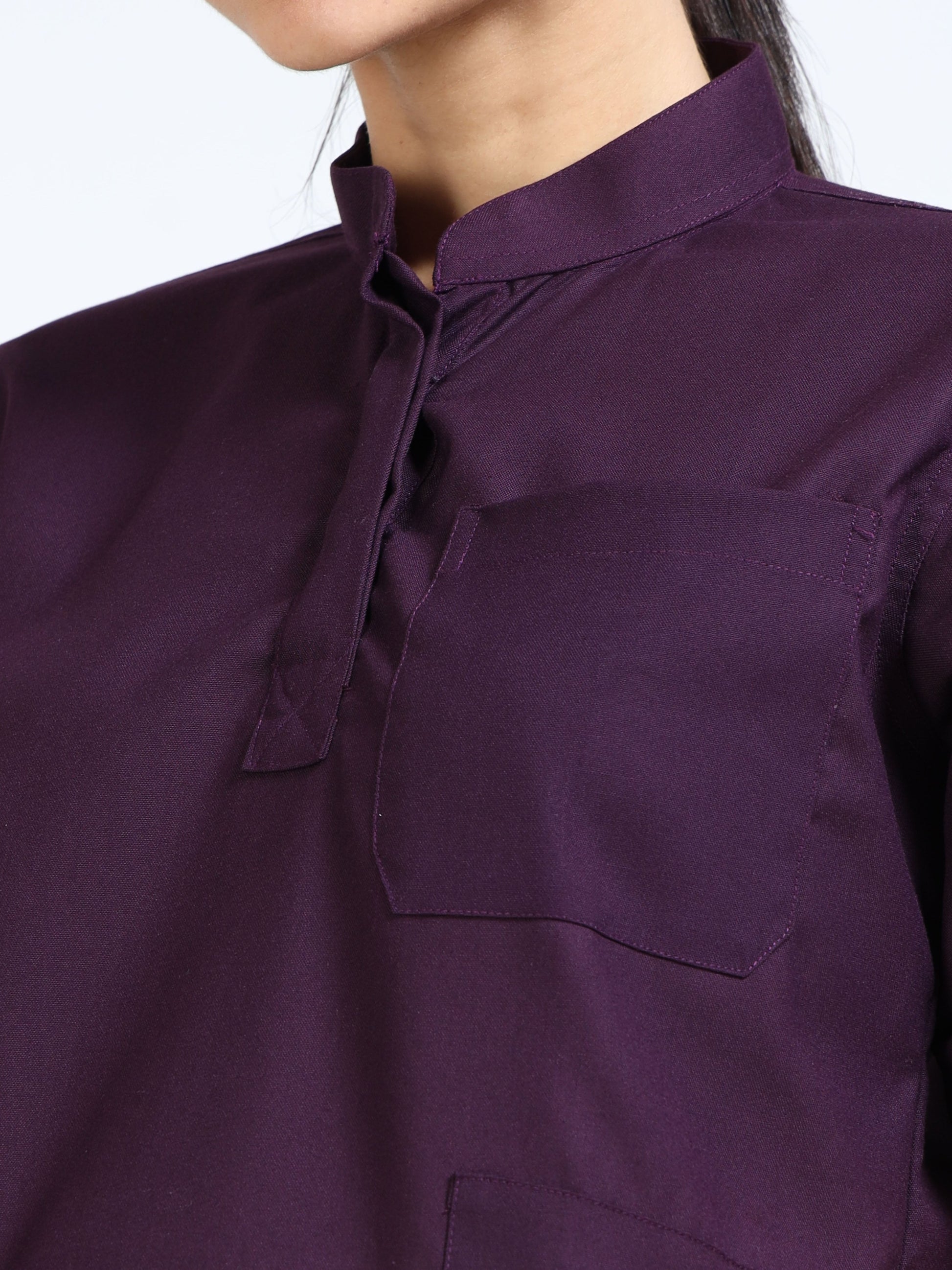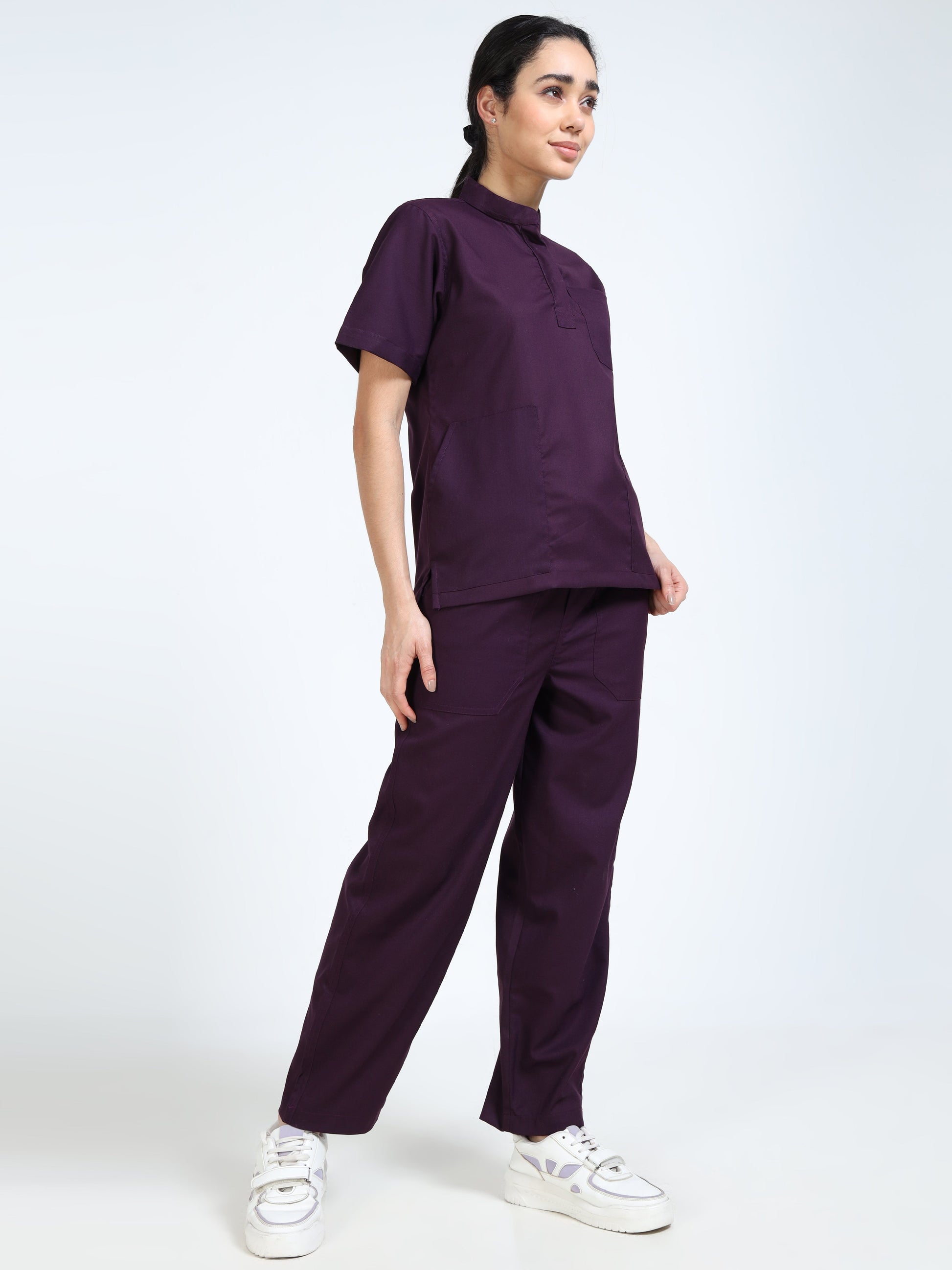 Women’s Wine Medical Scrub Set – Mandarin Collar (Chinese Collar) Top & Straight Pants | 2-Way Stretch, Antibacterial & Rich Color Fabric – Apollo